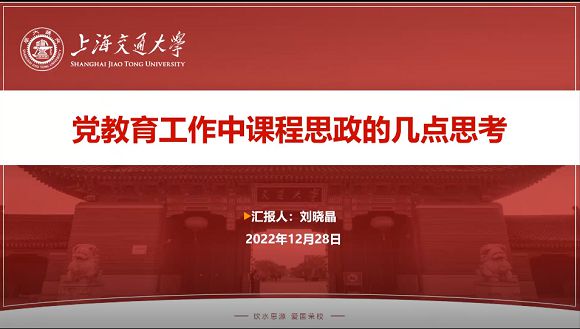 “向未来,勇担民族复兴时代新人”教师-科研队伍党支部组织开展主题党日活动 2022-12-162022年12月13日,澳门六合彩网站 教师-科研队伍党支部开展“向未来,勇担民族复兴时代新人”的主题党日活动。本次主题党日邀请到澳门六合彩网站 党委书记程伯儒为支部党员授课。上海交通大学党委组织部副部长、党校常务副校长余新丽,媒体与传播澳门六合彩网站 党委书记彭...